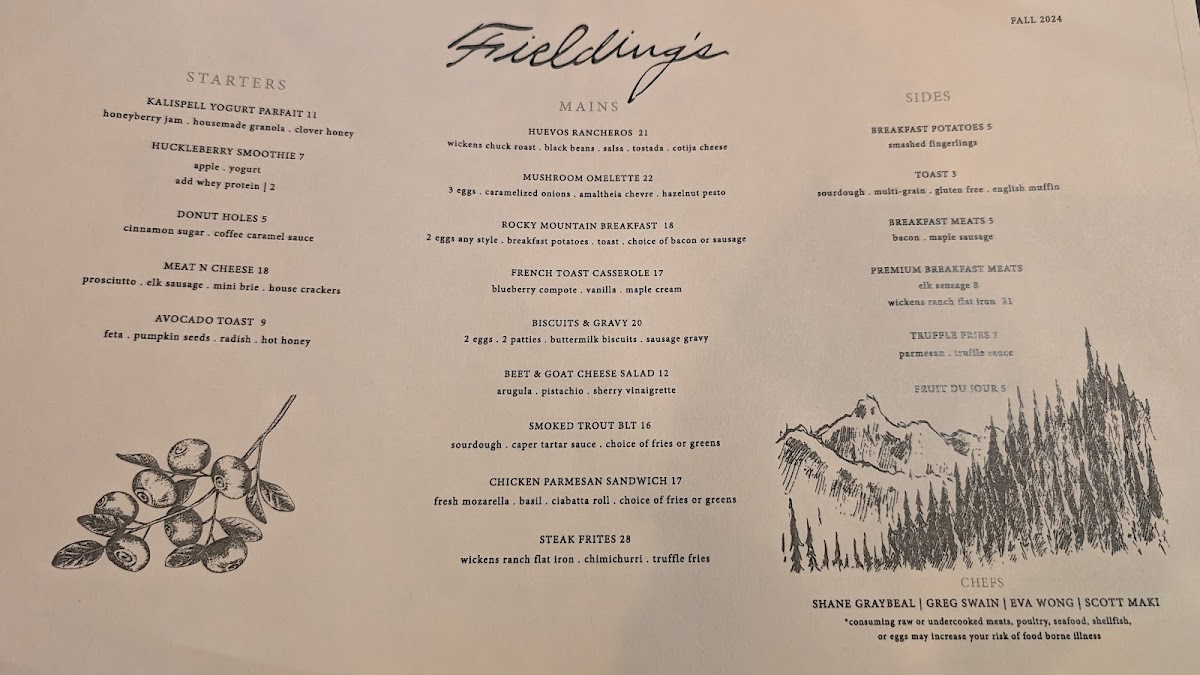 Welcome to Fieldings, a culinary gem nestled in the heart of Bozeman, Montana, located at 24 W Mendenhall St. Renowned for its elegant menu, Fieldings has quickly become the place to dine, offering a fresh and vibrant take on upscale dining.